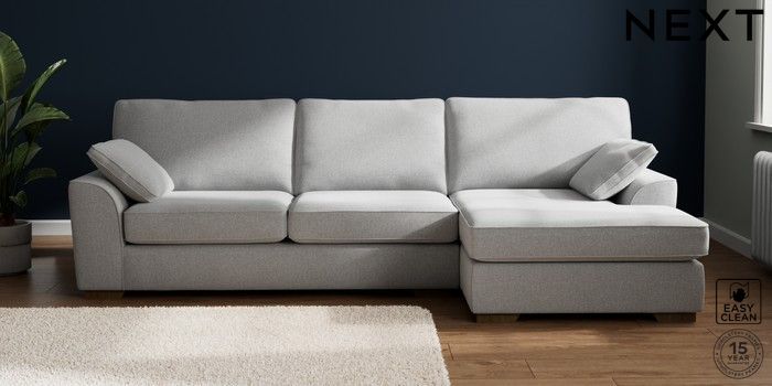 7.2.10 Stamford Large Sofa Chaise - Right Hand Tweedy Blend Easy Clean Light Silver Grey Large Square Angle - Mid | Made Click here to use our website with more accessibility support, for example screen readers
