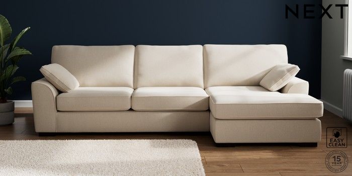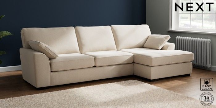 7.2.10 Stamford Large Sofa Chaise - Right Hand Tweedy Blend Easy Clean Oyster Large Square Angle - Dark | Made Click here to use our website with more accessibility support, for example screen readers