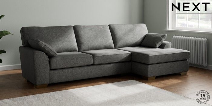 7.2.10 Stamford Large Sofa Chaise - Right Hand Tweedy Chenille Dark Grey Large Square Angle - Brushed Brass | Made Click here to use our website with more accessibility support, for example screen readers