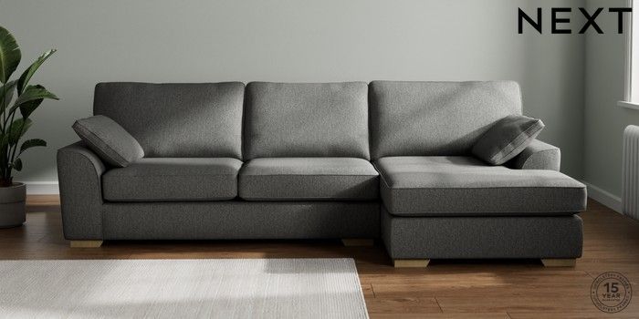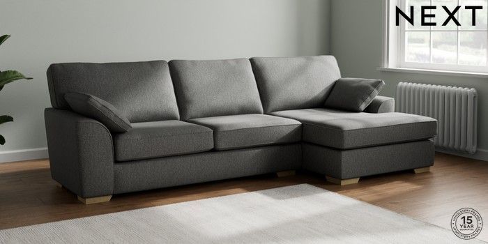 7.2.10 Stamford Large Sofa Chaise - Right Hand Tweedy Chenille Dark Grey Large Square Angle - Light | Made Click here to use our website with more accessibility support, for example screen readers