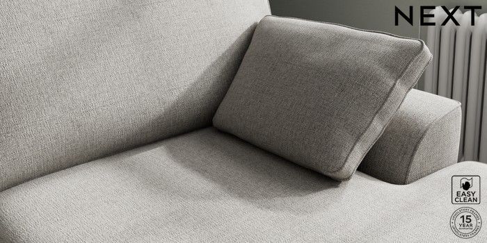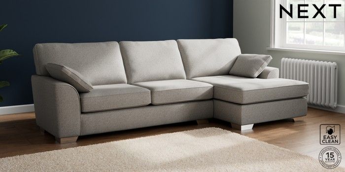 7.2.10 Stamford Large Sofa Chaise - Right Hand Woven Chenille Easy Clean Light Grey Large Square Angle - Chrome Metal | Made Click here to use our website with more accessibility support, for example screen readers