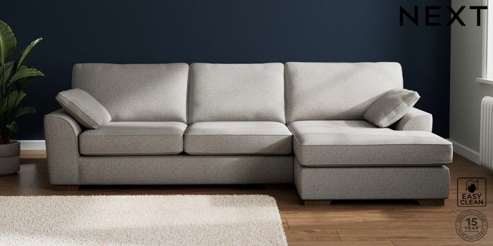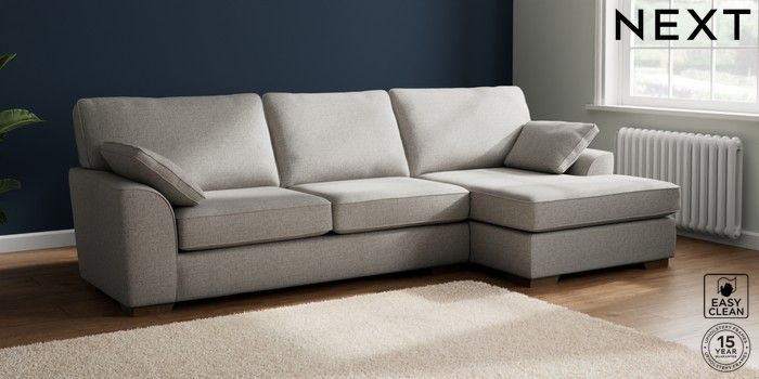 7.2.10 Stamford Large Sofa Chaise - Right Hand Woven Chenille Easy Clean Light Grey Large Square Angle - Mid | Made Click here to use our website with more accessibility support, for example screen readers