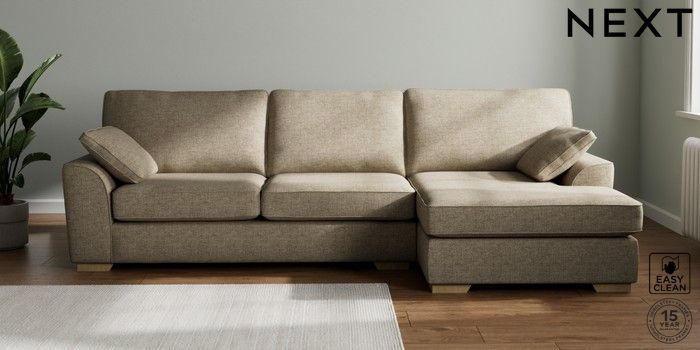 7.2.10 Stamford Large Sofa Chaise - Right Hand Woven Chenille Easy Clean Mid Natural Large Square Angle - Light | Made Click here to use our website with more accessibility support, for example screen readers