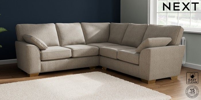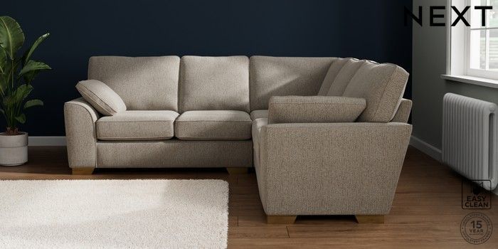 7.2.10 Stamford Medium Corner Sofa - Universal Chunky Boucle Easy Clean Dove Large Square Angle - Brushed Brass | Made Click here to use our website with more accessibility support, for example screen readers