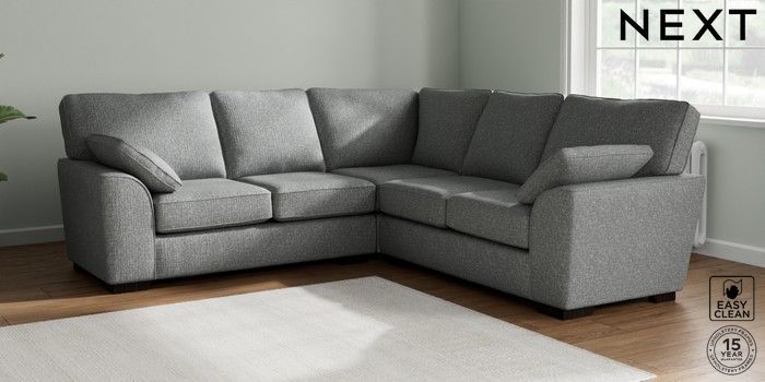 7.2.10 Stamford Medium Corner Sofa - Universal Chunky Boucle Easy Clean Mid Grey Large Square Angle - Dark | Made Click here to use our website with more accessibility support, for example screen readers