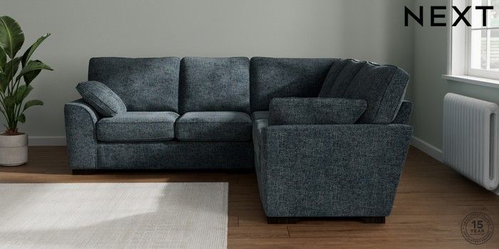 7.2.10 Stamford Medium Corner Sofa - Universal Chunky Chenille Dark Navy Blue Large Square Angle - Dark | Made Click here to use our website with more accessibility support, for example screen readers