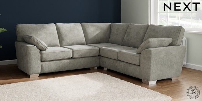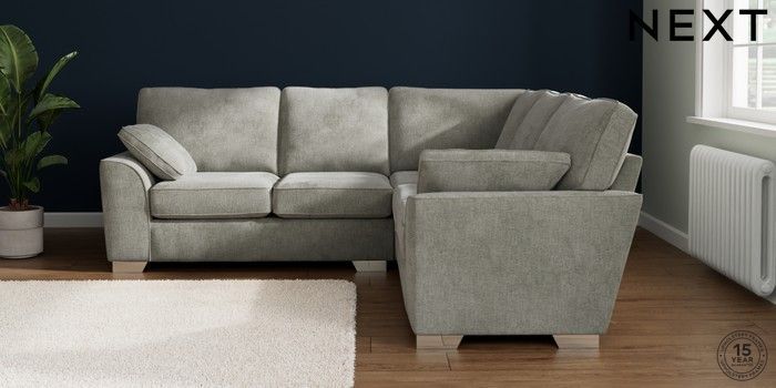 7.2.10 Stamford Medium Corner Sofa - Universal Chunky Chenille Light Grey Large Square Angle - Chrome Metal | Made Click here to use our website with more accessibility support, for example screen readers