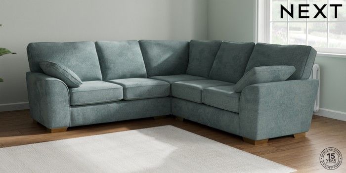 7.2.10 Stamford Medium Corner Sofa - Universal Chunky Chenille Light Teal Green Large Square Angle - Brushed Brass | Made Click here to use our website with more accessibility support, for example screen readers