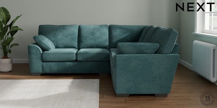 7.2.10 Stamford Medium Corner Sofa - Universal Chunky Chenille Mid Teal Green Large Square Angle - Gunmetal | Made Click here to use our website with more accessibility support, for example screen readers