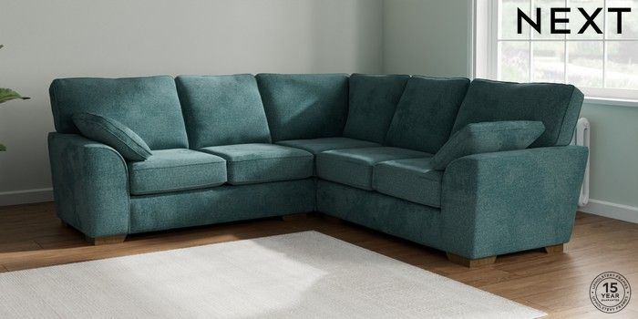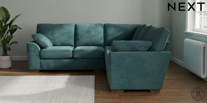7.2.10 Stamford Medium Corner Sofa - Universal Chunky Chenille Mid Teal Green Large Square Angle - Mid | Made Click here to use our website with more accessibility support, for example screen readers