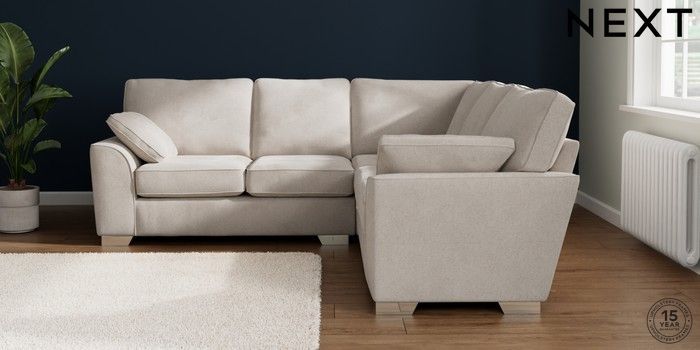 7.2.10 Stamford Medium Corner Sofa - Universal Chunky Chenille Oyster Large Square Angle - Chrome Metal | Made Click here to use our website with more accessibility support, for example screen readers