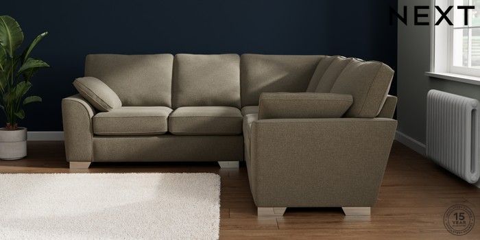 7.2.10 Stamford Medium Corner Sofa - Universal Chunky Marl Light Olive Green Large Square Angle - Chrome Metal | Made Click here to use our website with more accessibility support, for example screen readers
