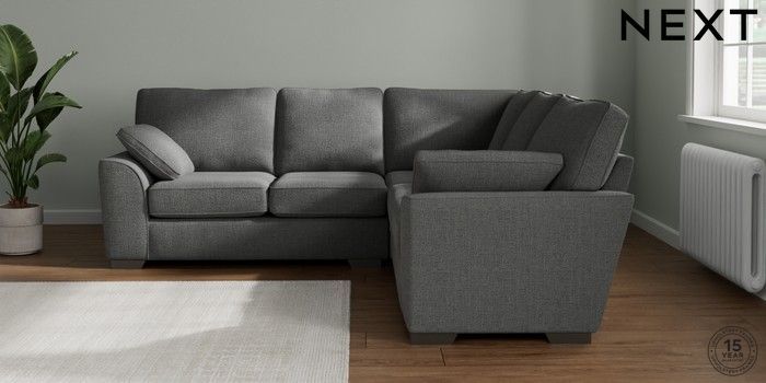 7.2.10 Stamford Medium Corner Sofa - Universal Chunky Texture Dark Grey Large Square Angle - Gunmetal | Made Click here to use our website with more accessibility support, for example screen readers