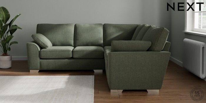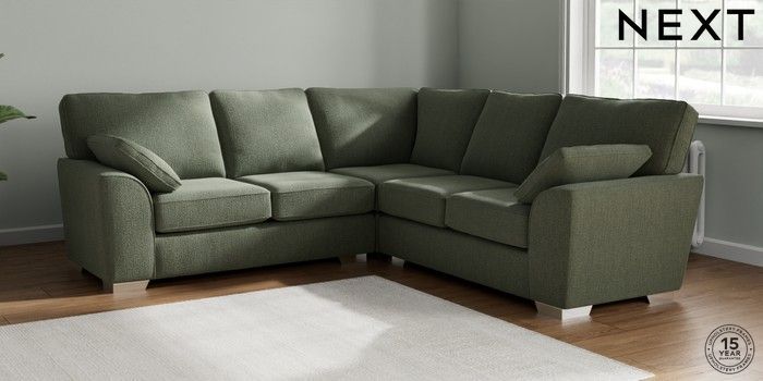 7.2.10 Stamford Medium Corner Sofa - Universal Chunky Texture Mid Forest Green Large Square Angle - Chrome Metal | Made Click here to use our website with more accessibility support, for example screen readers