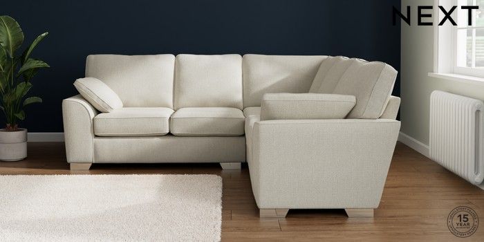 7.2.10 Stamford Medium Corner Sofa - Universal Chunky Texture Oyster Large Square Angle - Chrome Metal | Made Click here to use our website with more accessibility support, for example screen readers