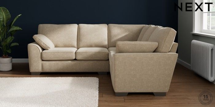 7.2.10 Stamford Medium Corner Sofa - Universal Chunky Weave Cream Large Square Angle - Gunmetal | Made Click here to use our website with more accessibility support, for example screen readers