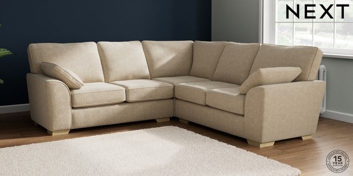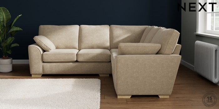 7.2.10 Stamford Medium Corner Sofa - Universal Chunky Weave Cream Large Square Angle - Light | Made Click here to use our website with more accessibility support, for example screen readers