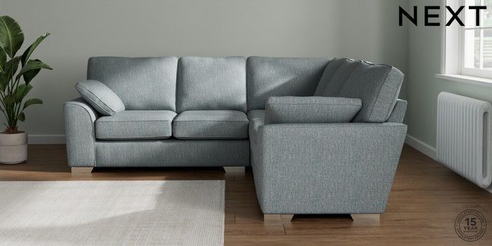 7.2.10 Stamford Medium Corner Sofa - Universal Chunky Weave Mid Blue Large Square Angle - Chrome Metal | Made Click here to use our website with more accessibility support, for example screen readers