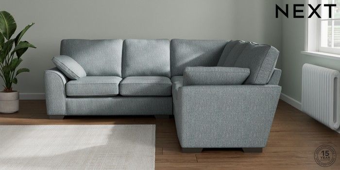 7.2.10 Stamford Medium Corner Sofa - Universal Chunky Weave Mid Blue Large Square Angle - Gunmetal | Made Click here to use our website with more accessibility support, for example screen readers