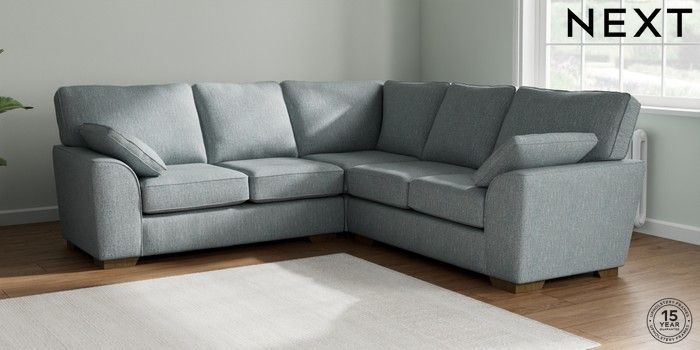 7.2.10 Stamford Medium Corner Sofa - Universal Chunky Weave Mid Blue Large Square Angle - Mid | Made Click here to use our website with more accessibility support, for example screen readers