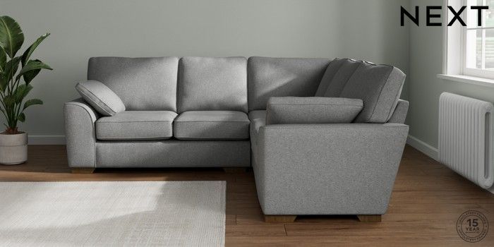 7.2.10 Stamford Medium Corner Sofa - Universal Chunky Weave Mid Grey Large Square Angle - Mid | Made Click here to use our website with more accessibility support, for example screen readers