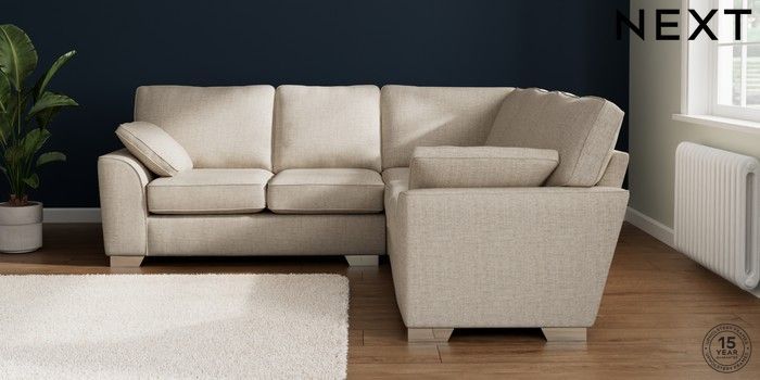 7.2.10 Stamford Medium Corner Sofa - Universal Chunky Weave Mid Natural Large Square Angle - Chrome Metal | Made Click here to use our website with more accessibility support, for example screen readers