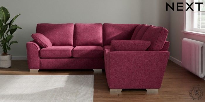 7.2.10 Stamford Medium Corner Sofa - Universal Cotswold Chenille Dark Raspberry Pink Large Square Angle - Chrome Metal | Made Click here to use our website with more accessibility support, for example screen readers