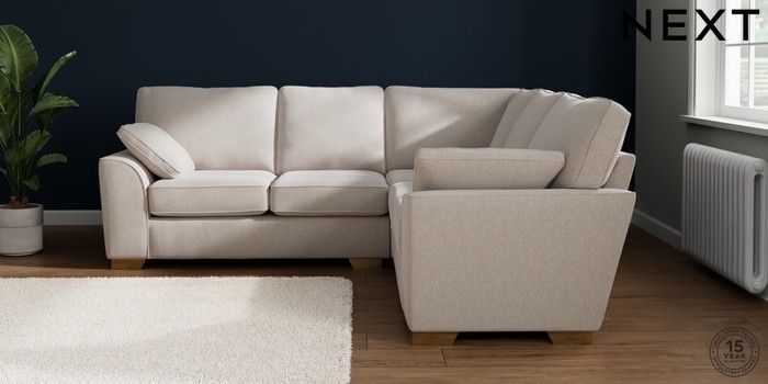7.2.10 Stamford Medium Corner Sofa - Universal Cotswold Chenille Oyster Large Square Angle - Brushed Brass | Made Click here to use our website with more accessibility support, for example screen readers