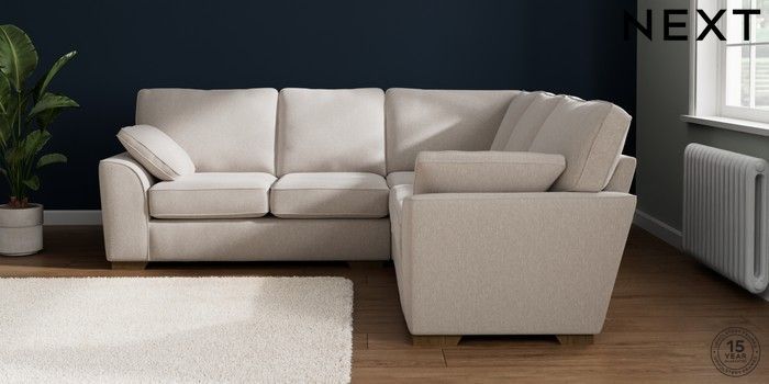 7.2.10 Stamford Medium Corner Sofa - Universal Cotswold Chenille Oyster Large Square Angle - Mid | Made Click here to use our website with more accessibility support, for example screen readers
