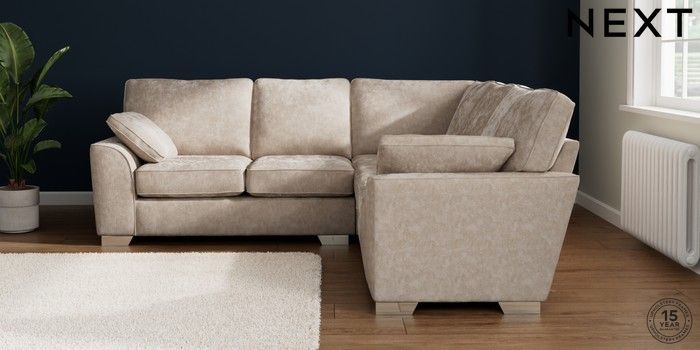 7.2.10 Stamford Medium Corner Sofa - Universal Distressed Velour Mid Natural Large Square Angle - Chrome Metal | Made Click here to use our website with more accessibility support, for example screen readers