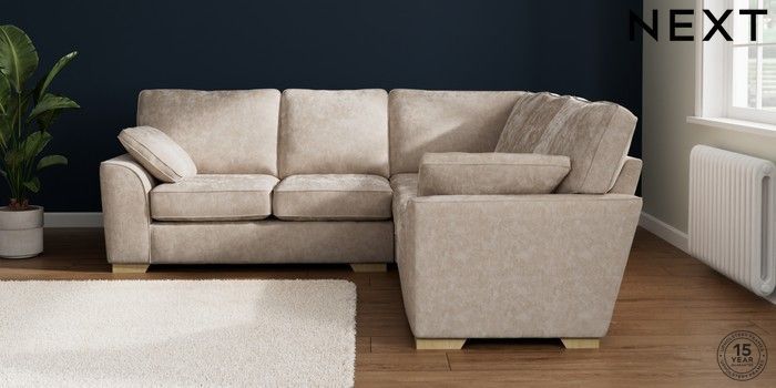 7.2.10 Stamford Medium Corner Sofa - Universal Distressed Velour Mid Natural Large Square Angle - Light | Made Click here to use our website with more accessibility support, for example screen readers