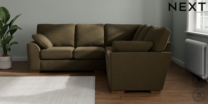 7.2.10 Stamford Medium Corner Sofa - Universal Fine Chenille Easy Clean Dark Moss Green Large Square Angle - Mid | Made Click here to use our website with more accessibility support, for example screen readers