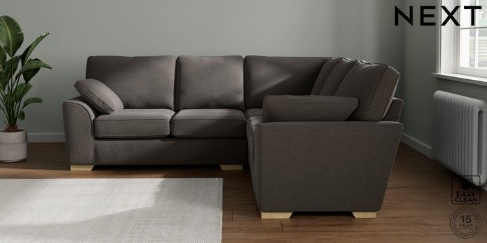 7.2.10 Stamford Medium Corner Sofa - Universal Fine Chenille Easy Clean Dark Smoke Grey Large Square Angle - Light | Made Click here to use our website with more accessibility support, for example screen readers