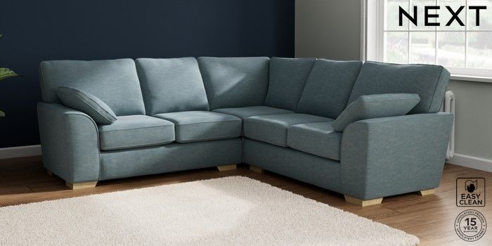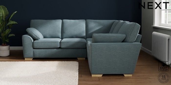 7.2.10 Stamford Medium Corner Sofa - Universal Fine Chenille Easy Clean Mid Blue Large Square Angle - Light | Made Click here to use our website with more accessibility support, for example screen readers