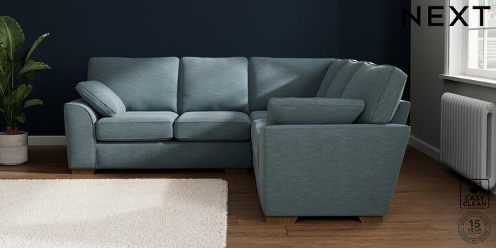 7.2.10 Stamford Medium Corner Sofa - Universal Fine Chenille Easy Clean Mid Blue Large Square Angle - Mid | Made Click here to use our website with more accessibility support, for example screen readers