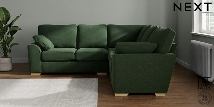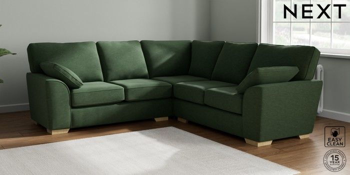 7.2.10 Stamford Medium Corner Sofa - Universal Fine Chenille Easy Clean Mid Khaki Green Large Square Angle - Light | Made Click here to use our website with more accessibility support, for example screen readers