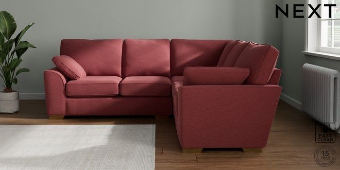 7.2.10 Stamford Medium Corner Sofa - Universal Fine Chenille Easy Clean Mid Pink Large Square Angle - Brushed Brass | Made Click here to use our website with more accessibility support, for example screen readers