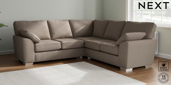 7.2.10 Stamford Medium Corner Sofa - Universal Fine Chenille Easy Clean Mid Taupe Brown Large Square Angle - Chrome Metal | Made Click here to use our website with more accessibility support, for example screen readers