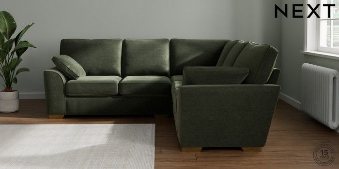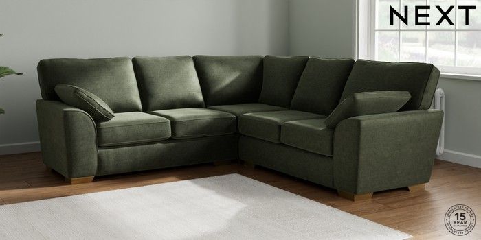 7.2.10 Stamford Medium Corner Sofa - Universal Luxe Chenille Mid Green Large Square Angle - Brushed Brass | Made Click here to use our website with more accessibility support, for example screen readers