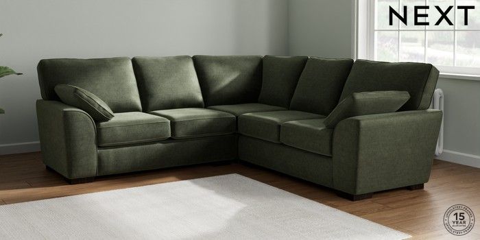 7.2.10 Stamford Medium Corner Sofa - Universal Luxe Chenille Mid Green Large Square Angle - Dark | Made Click here to use our website with more accessibility support, for example screen readers