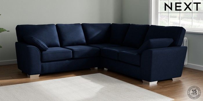 7.2.10 Stamford Medium Corner Sofa - Universal Luxe Chenille Navy Blue Large Square Angle - Chrome Metal | Made Click here to use our website with more accessibility support, for example screen readers