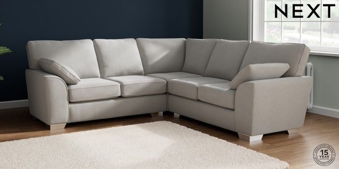 7.2.10 Stamford Medium Corner Sofa - Universal Natural Mix Light Grey Large Square Angle - Chrome Metal | Made Click here to use our website with more accessibility support, for example screen readers