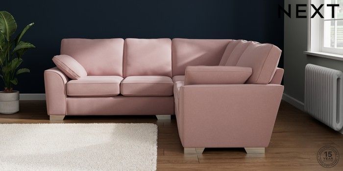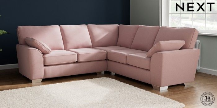 7.2.10 Stamford Medium Corner Sofa - Universal Natural Mix Light Rose Pink Large Square Angle - Chrome Metal | Made Click here to use our website with more accessibility support, for example screen readers