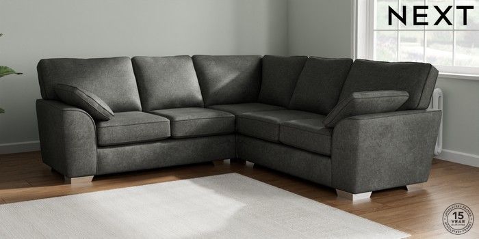 7.2.10 Stamford Medium Corner Sofa - Universal Plush Chenille Dark Grey Large Square Angle - Chrome Metal | Made Click here to use our website with more accessibility support, for example screen readers