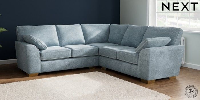 7.2.10 Stamford Medium Corner Sofa - Universal Plush Chenille Light Blue Large Square Angle - Brushed Brass | Made Click here to use our website with more accessibility support, for example screen readers