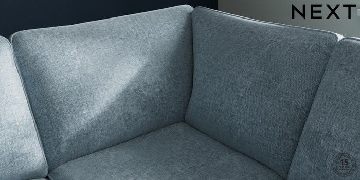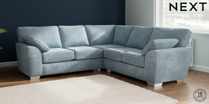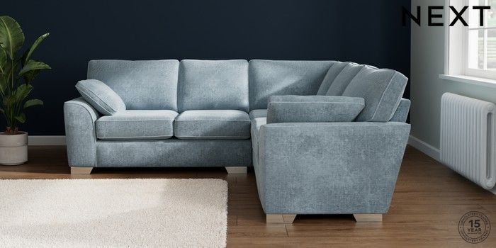 7.2.10 Stamford Medium Corner Sofa - Universal Plush Chenille Light Blue Large Square Angle - Chrome Metal | Made Click here to use our website with more accessibility support, for example screen readers