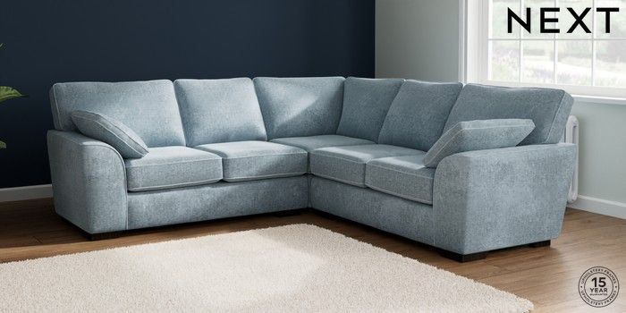 7.2.10 Stamford Medium Corner Sofa - Universal Plush Chenille Light Blue Large Square Angle - Dark | Made Click here to use our website with more accessibility support, for example screen readers