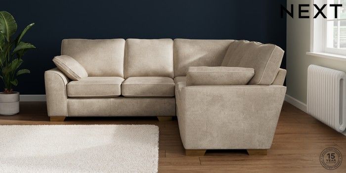 7.2.10 Stamford Medium Corner Sofa - Universal Plush Chenille Light Natural Large Square Angle - Brushed Brass | Made Click here to use our website with more accessibility support, for example screen readers