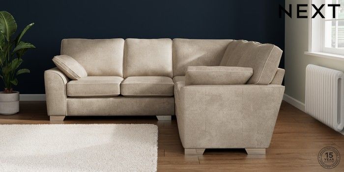 7.2.10 Stamford Medium Corner Sofa - Universal Plush Chenille Light Natural Large Square Angle - Chrome Metal | Made Click here to use our website with more accessibility support, for example screen readers