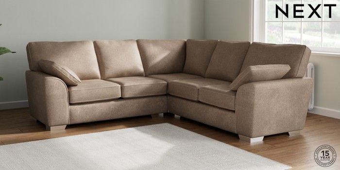 7.2.10 Stamford Medium Corner Sofa - Universal Plush Chenille Mid Natural Large Square Angle - Chrome Metal | Made Click here to use our website with more accessibility support, for example screen readers